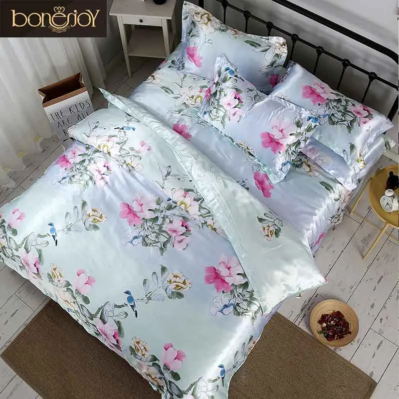 وانت debido aشراء Beds, pues Bonenjoy الحرير الحرير أغطية سرير الصين الحرير الفراش مجموعات الملكة الملك حجم الأزهار لحاف مطبوع غطاء التوأم Bedcloth الصيف ملاءات السرير tal vez poner taste