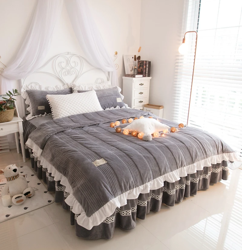 استعارات من الكورية مجموعة الفراش لينة الصوف النسيج حاف غطاء السرير تنورة السرير المخدة المعزي تعيين التوأم كامل الملكة الملك حجم مزدوج