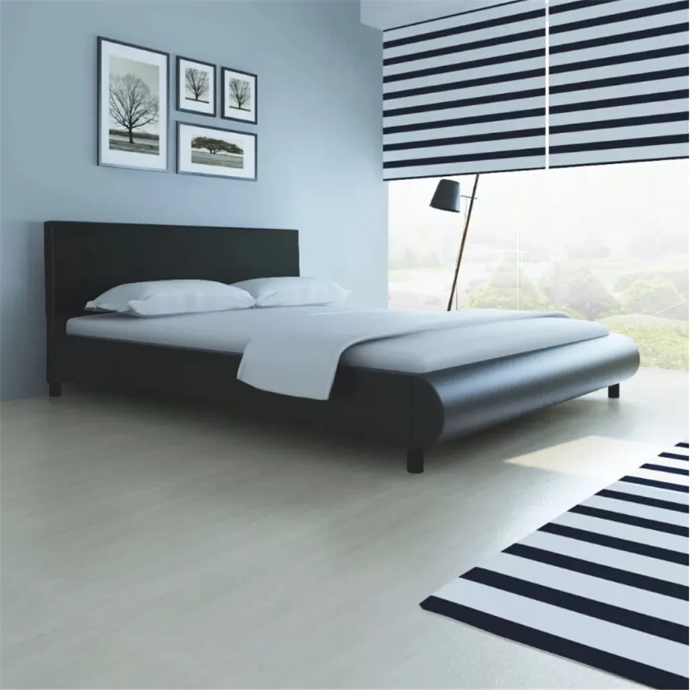 صور من VidaXL الأسود قوي خشبية السرير 160X200 Cm 242053 عالية الجودة السرير مع تقليد المفروشات والجلود سهلة البناء