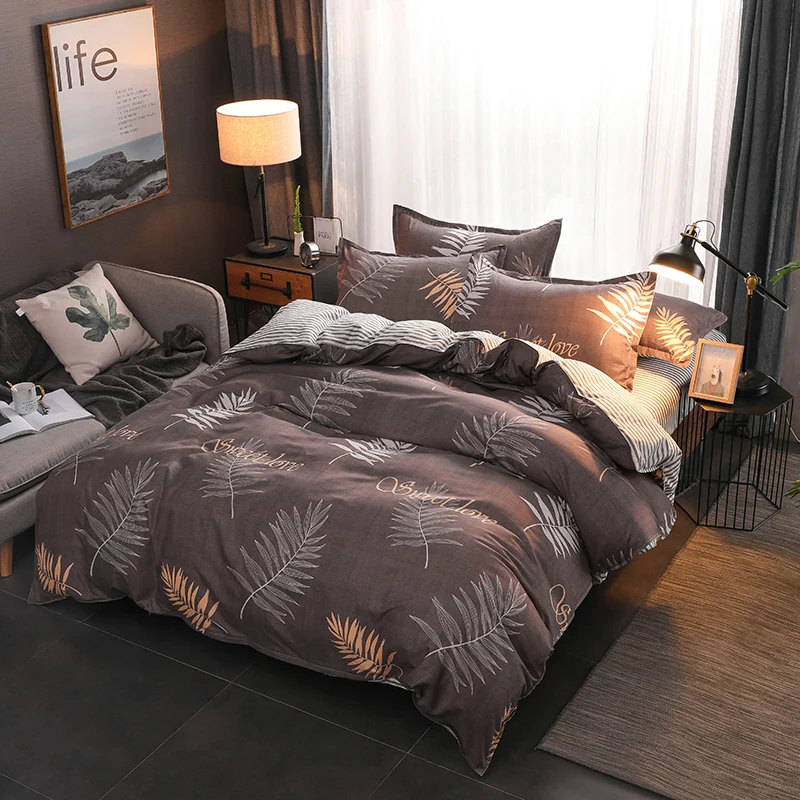 صور من أفضل. WENSD جودة لينة مريحة يترك سوبر الملك طقم سرير الشتاء 3/4 قطعة مجموعة رمادي بسيط سستة طقم ملاءة سرير edredon